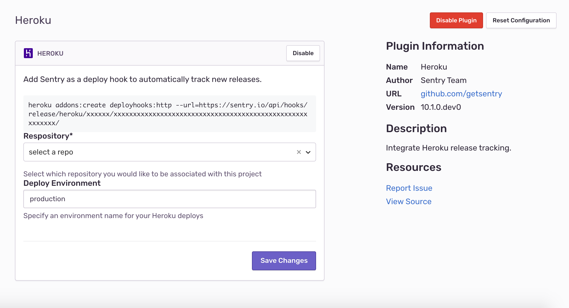 Follow this by specifying which repository and deploy environment should be associated with the particular Sentry Project.