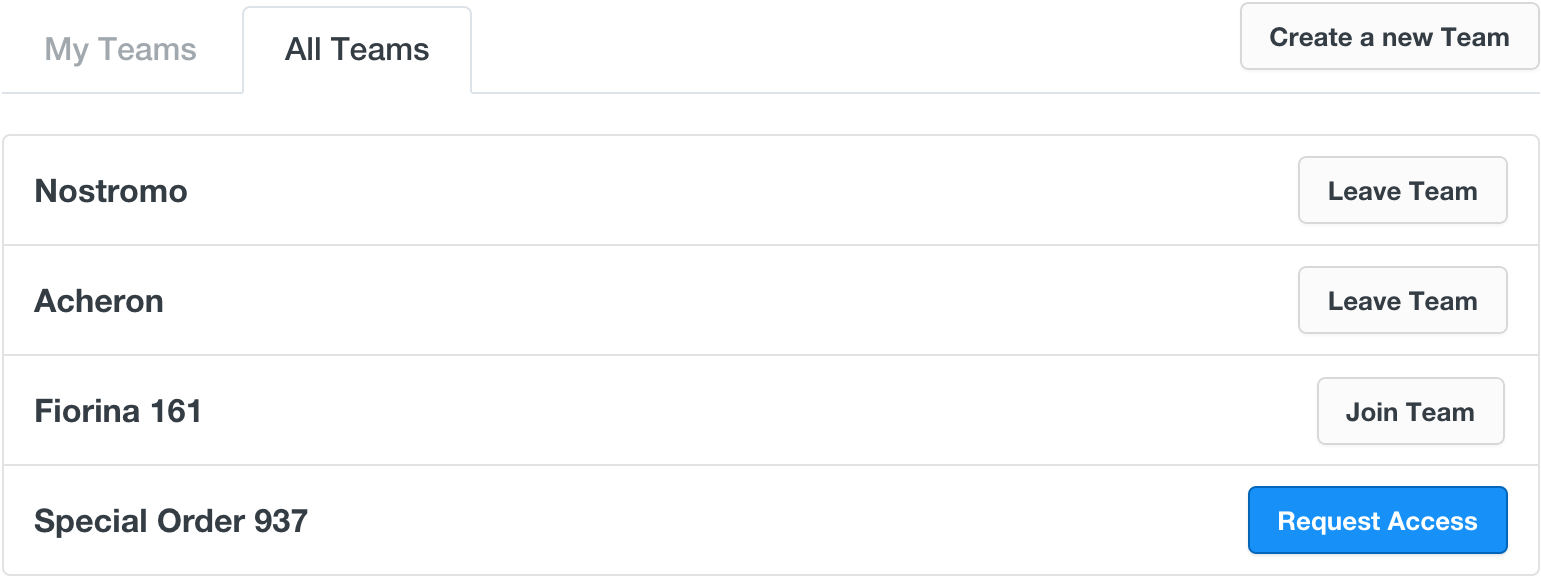 Before, teams were only visible if you were a member of the team or if you had global access. Today we've introduced an 'All Teams' tab that surfaces teams in your organization that you might want to be a part of.