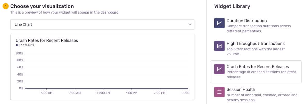 Say you want to see crash-free sessions and crash-free users front and center (we’ve got a pre-made widget for that).