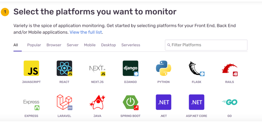 To get started, begin creating a Sentry account here. You will be able to choose which technology you are using. Choose Django and then click Create project.