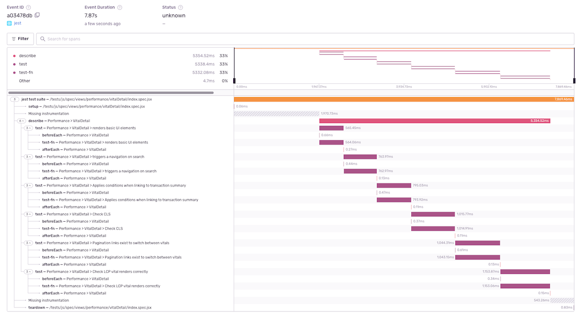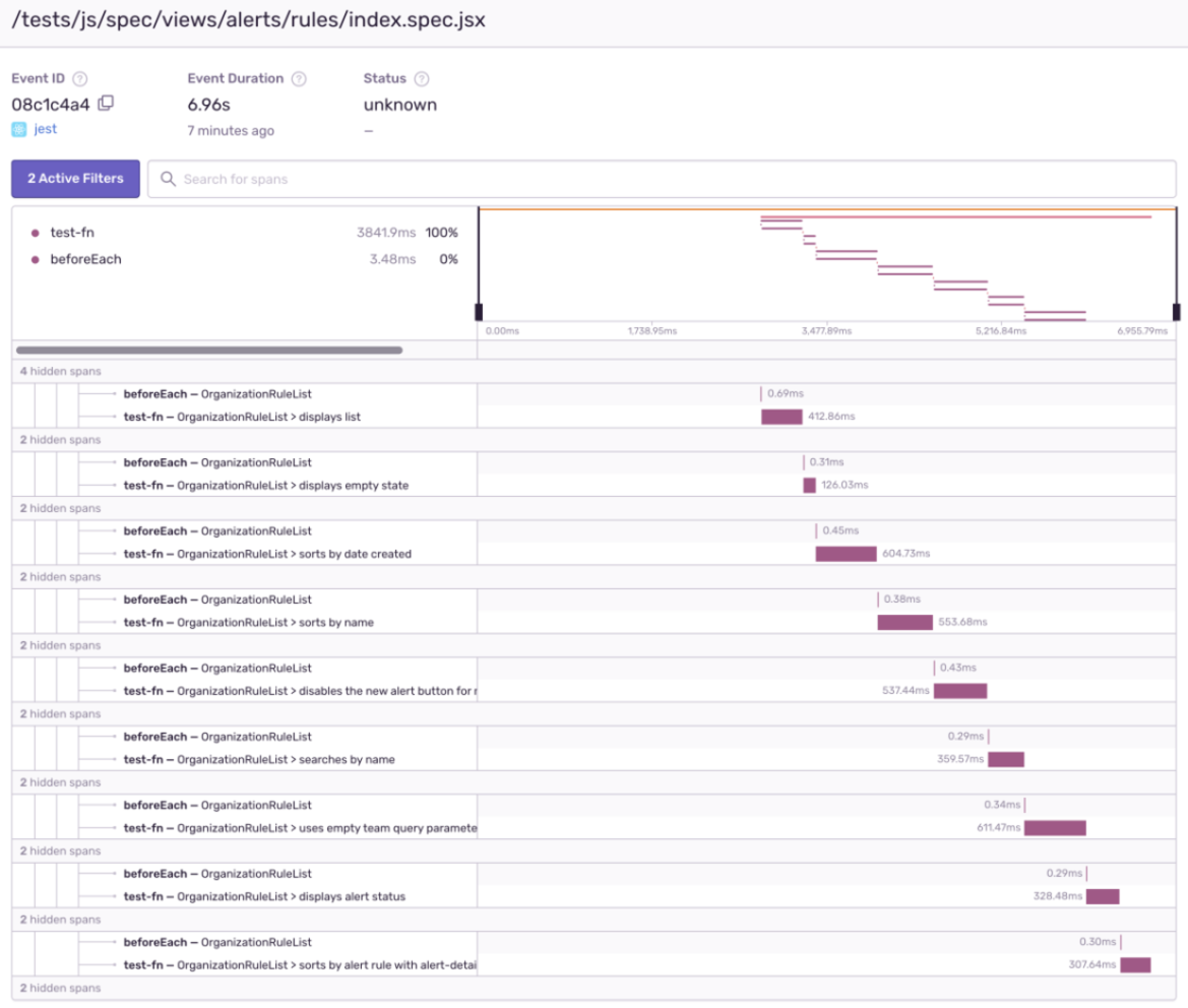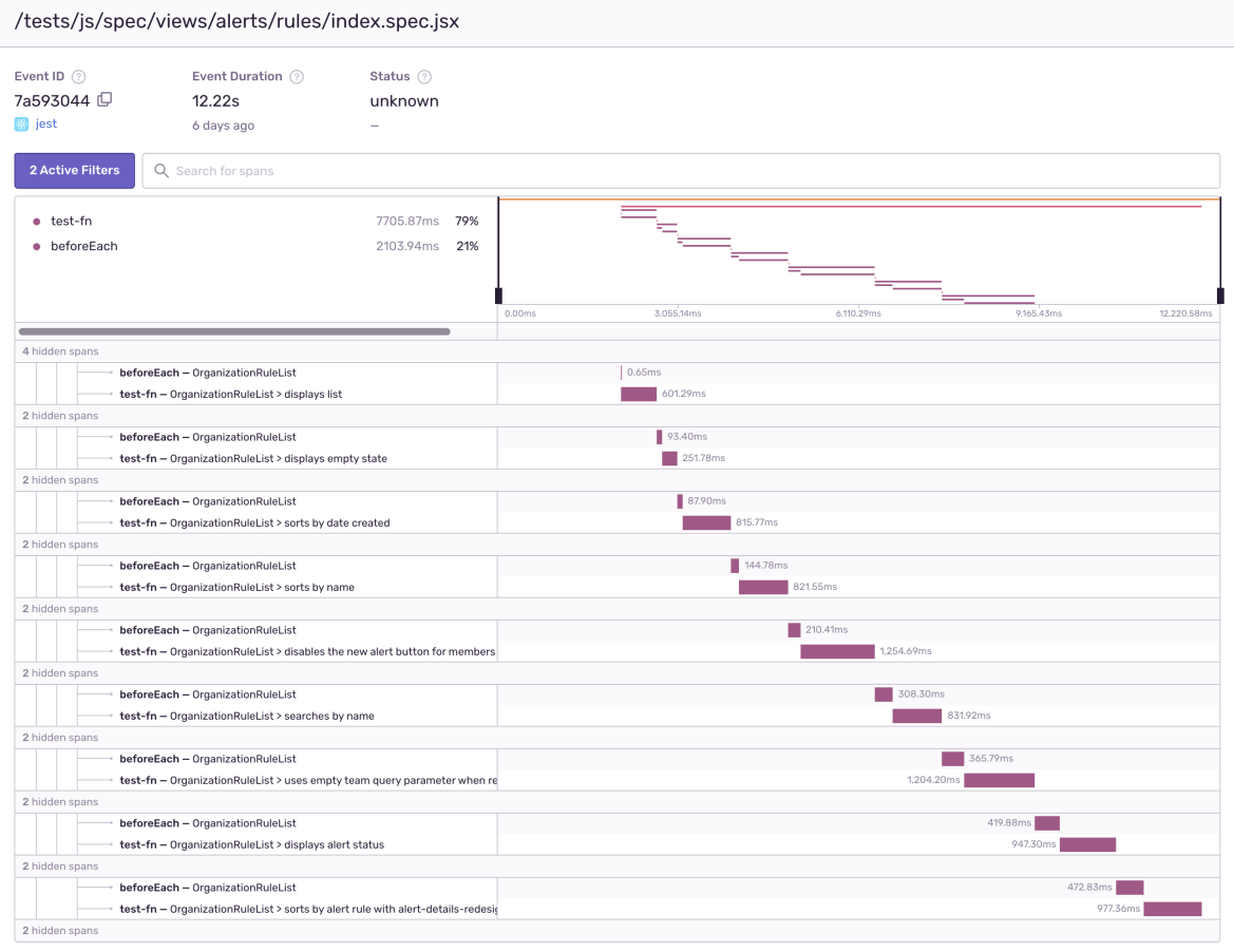 Here at Sentry, we like to dogfood our product as much as possible. Sometimes, it results in unusual applications of our product and sometimes these unusual applications pay off in a meaningful way. In this blog post, we'll examine one such case where we use the Sentry JavaScript SDK to instrument Jest (which runs our frontend test suite) and how we addressed the issues that we found.