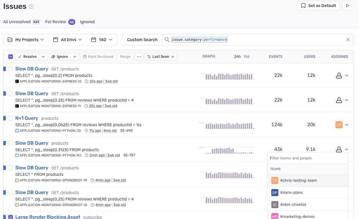 While we’ve all had to fix an N+1 problem, performance problems come in multiple flavors. Today, you’ll notice more Performance Issues in your issue feed, Slack alerts, and email notifications.