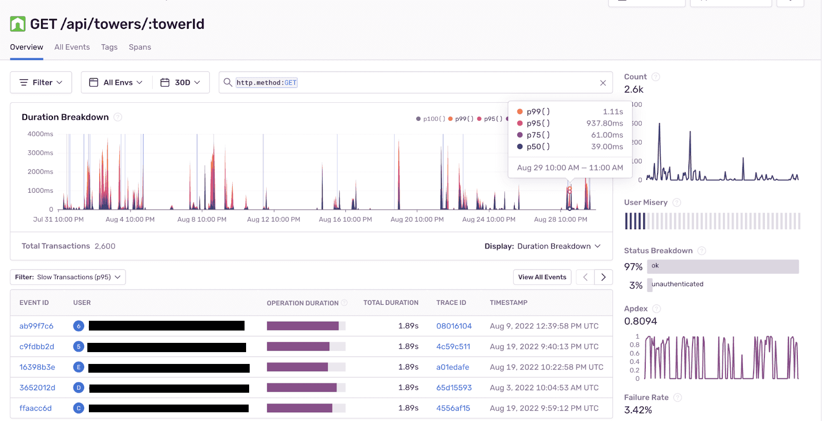 We use Sentry to monitor API and endpoint performance and have seen up to a 90% reduction in API request execution time for our highest-volume portfolio products. Customer success is a critical function of our business’ daily operations, and performance gives us a clear idea of how we’re tracking against our “frictionless user experience” goal, says Ruben.