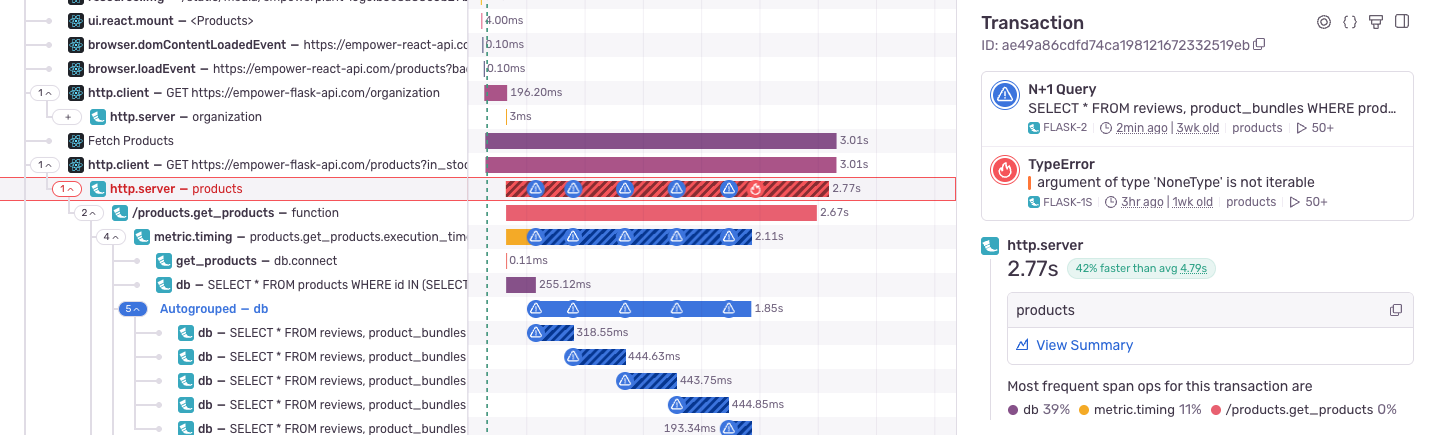 Just like that, we're capturing performance metrics, errors, and tracing data across both Flask and React.