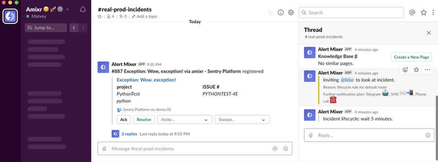 In Amixr, incident workflow is organized collaboratively with the goal of achieving significant improvement in performance, while helping to answer the questions above. Amixr aims to make it significantly faster to chat, react, ask, involve, make decisions, and write postmortems.