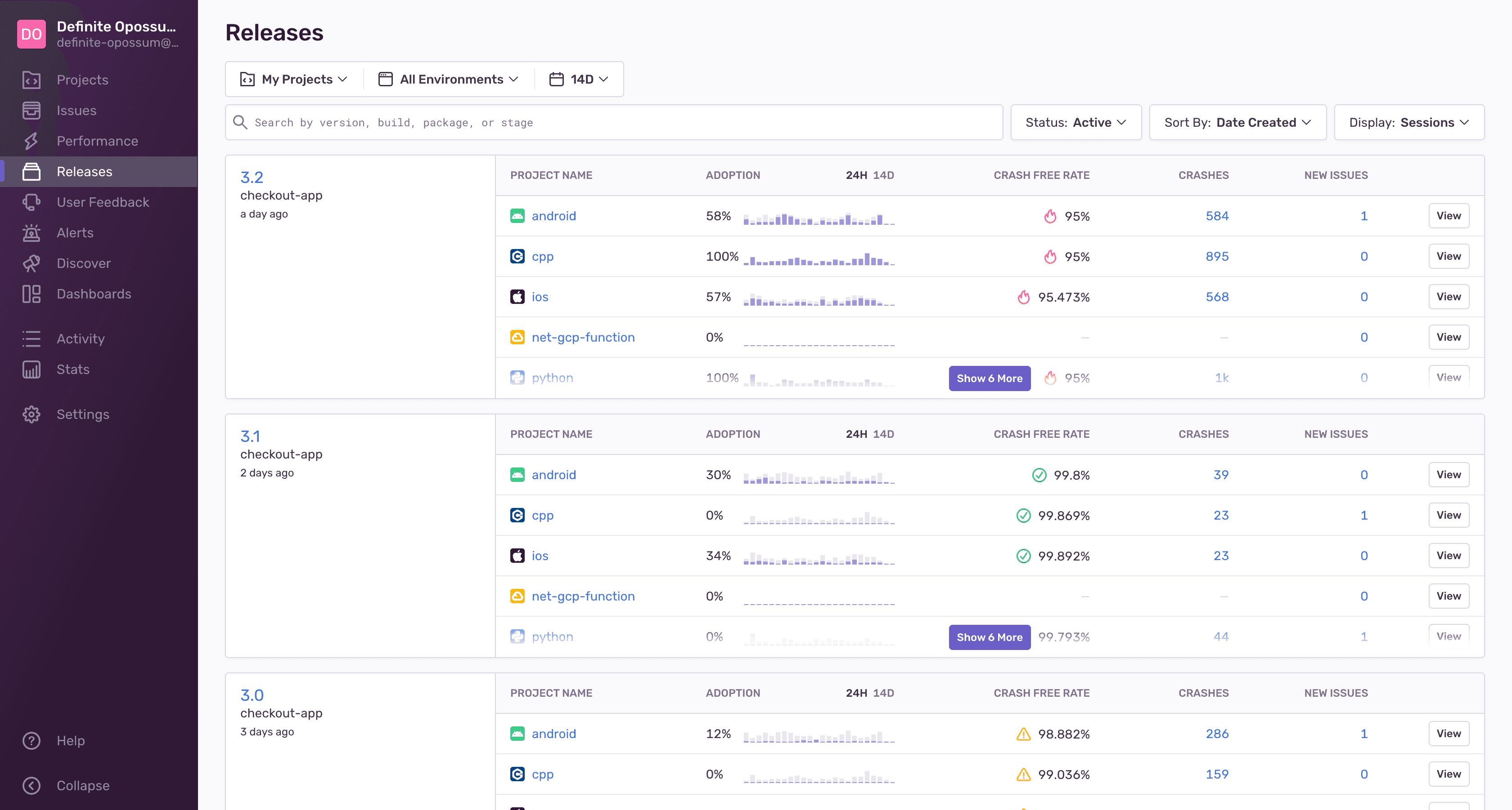 Alex's teams ship software through an average of 10 daily deployments and combine continuous deployment systems like ArgoCD with Sentry and canary deployments to ensure that releases don’t affect the bulk of their customers. Monitoring stability and adoption, and comparing past releases help them streamline future planning cycles so developers spend more time focused on their customers.